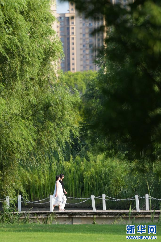 7月21日,市民在汉中市天汉湿地公园内休闲。新华社记者 李一博 摄pagebreak