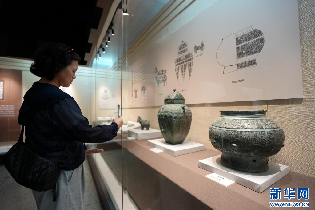 7月22日,游客在汉中市博物馆参观汉中境内出土的青铜器。新华社记者 李一博 摄