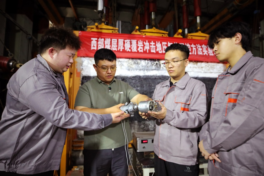 “西部是我国优质煤炭资源开发主产区,原煤总产量超过全国50%,而西部冲击地压矿井约占全国50%。近年来,冲击地压已逐渐成为制约西部矿区安全高效生产的主要因素之一。今年暑假,西部煤炭绿色开采团队聚焦冲击地压智能预警与调控关键科学难题,进行了自主知识产权监测设备研发和大型三维模拟实验等创新研究工作。”来兴平教授说。