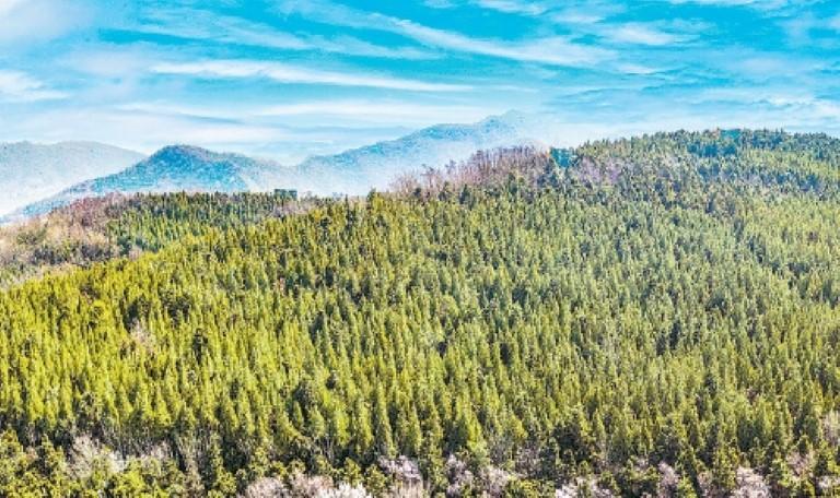巍巍秦岭满目葱茏。(记者 王健 实习生 付子涵 摄)