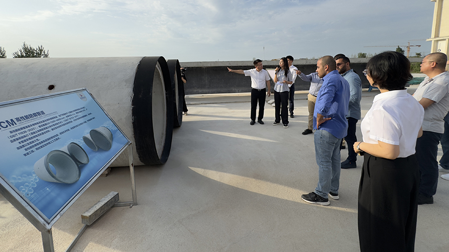 9月9日,在陕建瑞高科技园,陕建外籍员工了解建筑新材料。