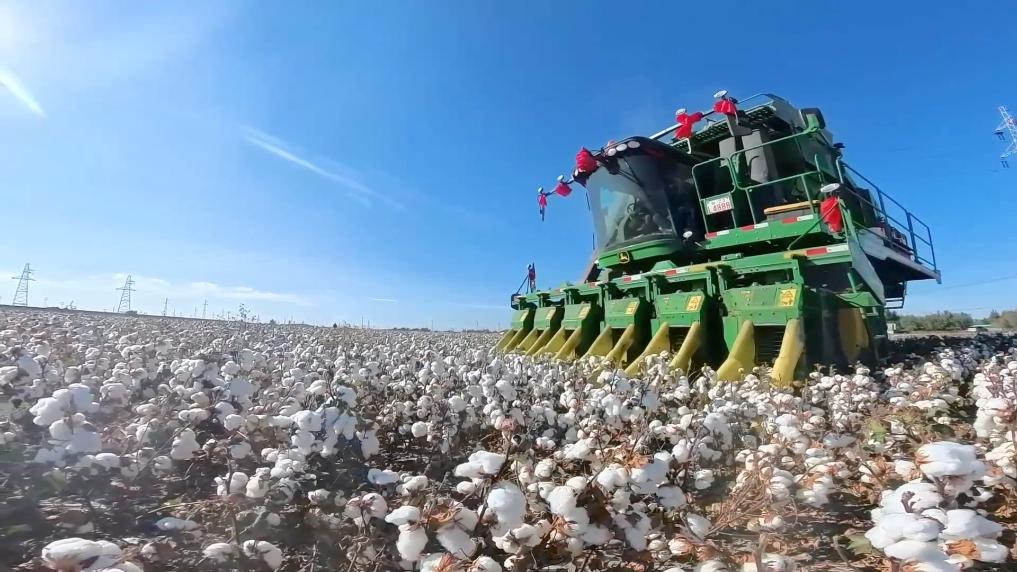 占我国棉花产量超九成的新疆迎来棉花采收季。一台台采棉机穿梭在天山南北的广阔棉田里,将雪白棉朵精准采收、压缩打包,昔日“弯腰拾花”的劳作场景一去不复返。