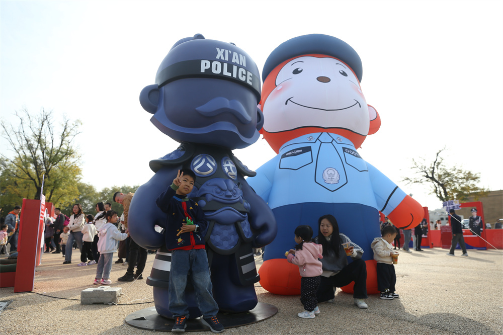 11月1日的大明宫遗址公园,丹凤门旁的创意警种入口装饰前人头攒动。巨型机甲长安卫手持“法治同行”标牌伫立其间,与身后的古建飞檐相映成趣。“警彩西安汇聚长安-2025西安公安第三届警营开放日”在此启幕,恰逢《中华人民共和国法治宣传教育法》正式实施。