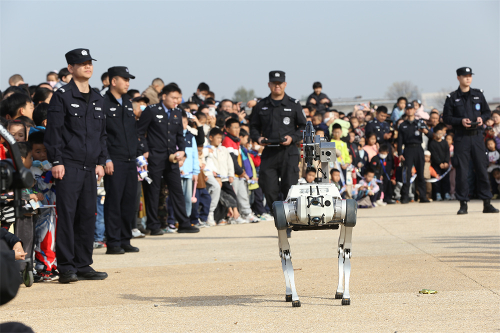 警营开放日活动现场向现场观众展示的警用机器狗。pagebreak