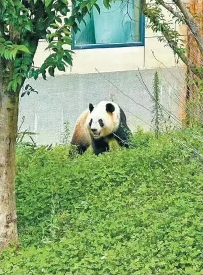 秦岭大熊猫佛坪救护繁育研究基地,大熊猫“党生”在玩耍。
