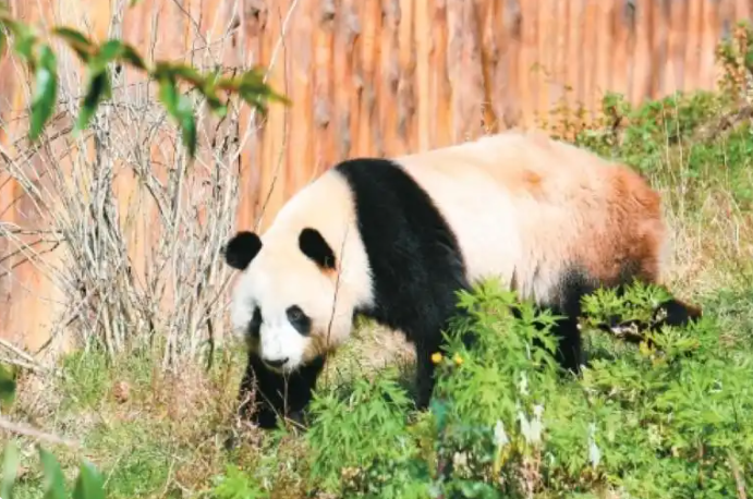 经多方努力,这只大熊猫被送往陕西佛坪国家级自然保护区管理局。蛔虫被打掉后,它的体重从60公斤慢慢涨至82.5公斤。而此时一个震撼的细节被证实:它的毛色并非黑与白,而是白色与棕色相间——耳朵、眼圈、睫毛、鼻头,甚至肩胛和四肢都是淡淡的棕色,像披了一层温柔的“金纱”。