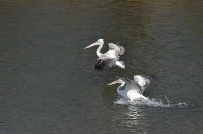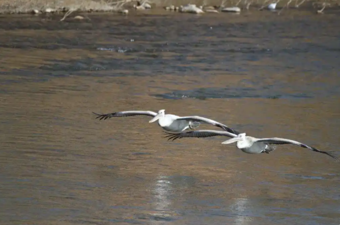 近日,陕西商洛首次发现国家一级保护动物卷羽鹈鹕。