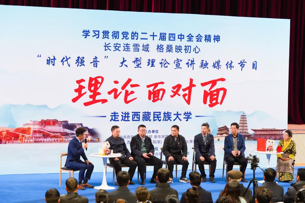 新华网西安12月20日电(詹乐游)12月19日,由中共西安市委宣传部、新华网陕西分公司、西安市总工会、西安市社会科学院联合西安广播电视台主办,西藏自治区驻西安办事处、西藏民族大学承办的“时代强音”大型理论宣讲融媒体节目《理论面对面》走进西藏民族大学,节目以“长安连雪域 格桑映初心”为主题,通过理论解读、故事分享、互动交流、文艺表演等形式,立体展现陕藏协作的丰硕成果与援藏干部的使命担当。