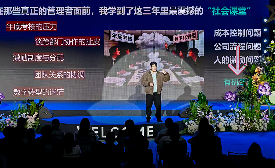 在盛典上,西安欧亚学院工商管理学院2022级工商管理专业金明宇、文化传媒学院2023级网络与新媒体专业吴潘宁、工商管理学院2024级国际商务专业郭琪昂三位同学,分别讲述了各自在参加创新创业赛事并孵化创立公司、参与“巷野行走计划”打开真实生活场景学习、参与招生办招生季校园接待中的点滴经历和成长感悟。