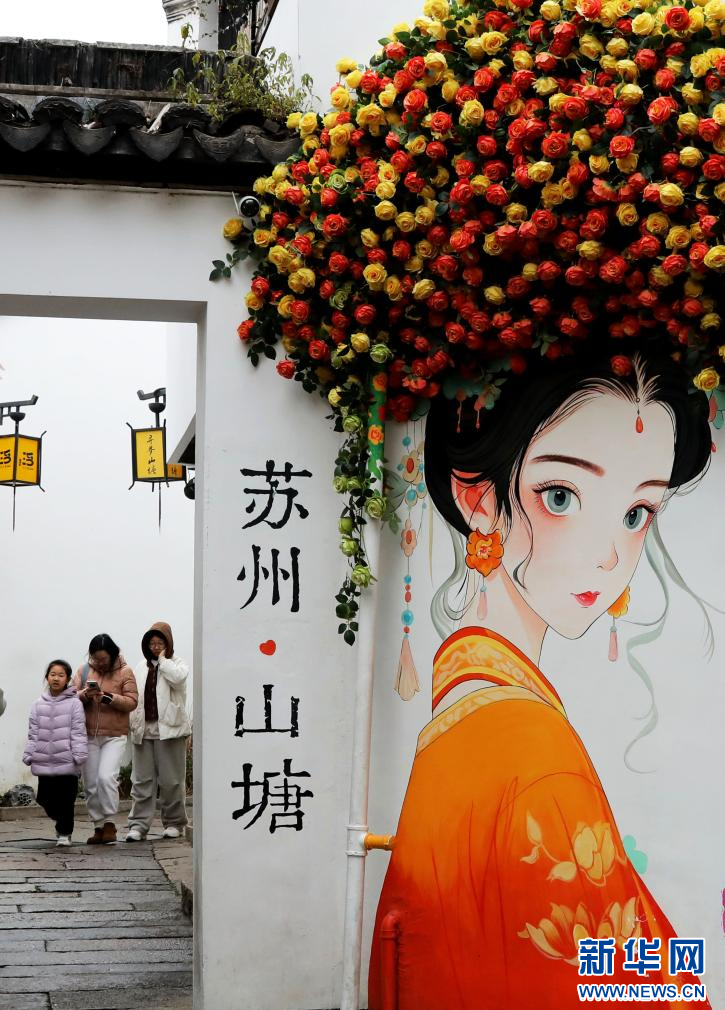 2026年1月1日,游客在江苏苏州山塘街赏景游玩。