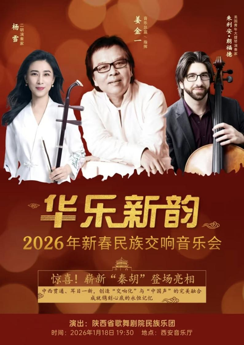 当西方的交响乐浪潮,遇上东方的秦风古韵,会碰撞出何等惊艳的火花?答案就藏在2026年的新春舞台。华乐新韵·新春民族交响音乐会即将启航,陕演集团·陕西省歌舞剧院民族乐团特邀您共赴这场音乐之约,聆听中西合璧的崭新音色,见证惊喜的现场瞬间。