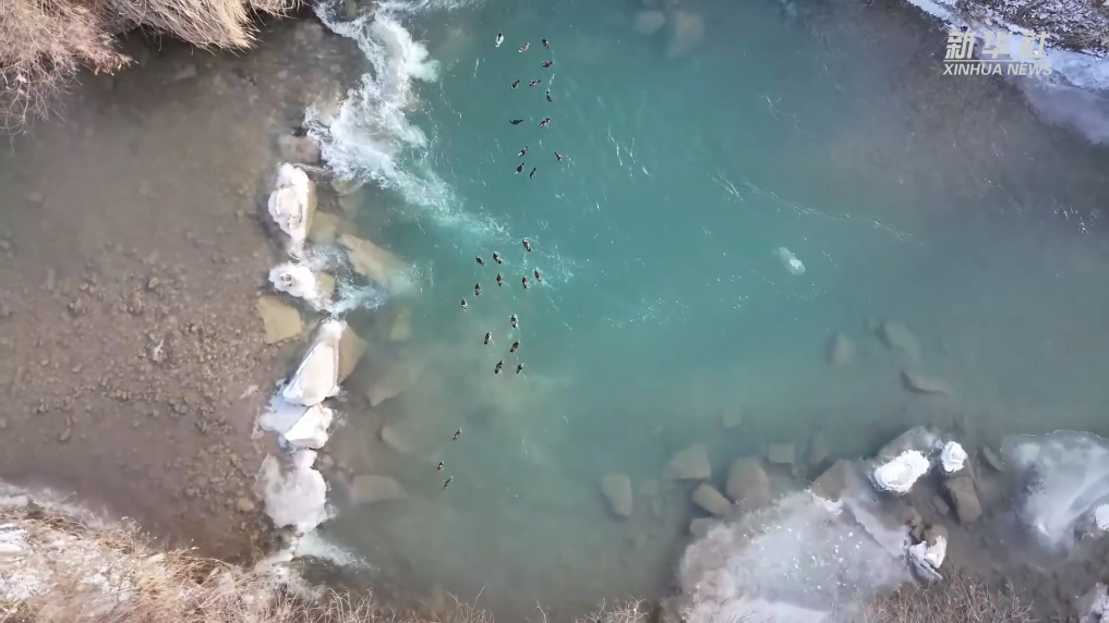 寒冬时节,在陕西省富县张村驿镇葫芦河段,一群“水上精灵”鸳鸯的到来,为静谧的水面增添了灵动与生机。