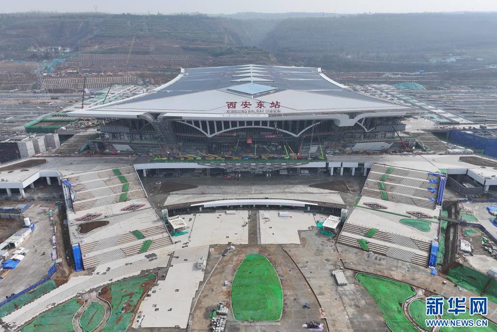 记者从中国铁路西安局集团有限公司了解到,特大型铁路综合交通枢纽西安东站春节期间持续施工,目前已完成总建设进度的90%。车站室内装修、配套设施安装等工作全速开展,轨道工程进入全面精调阶段,站场线路设备正进行集中整治,站场及动车所已启动静态验收,为后续建成开通、高质量投用运营奠定坚实基础。