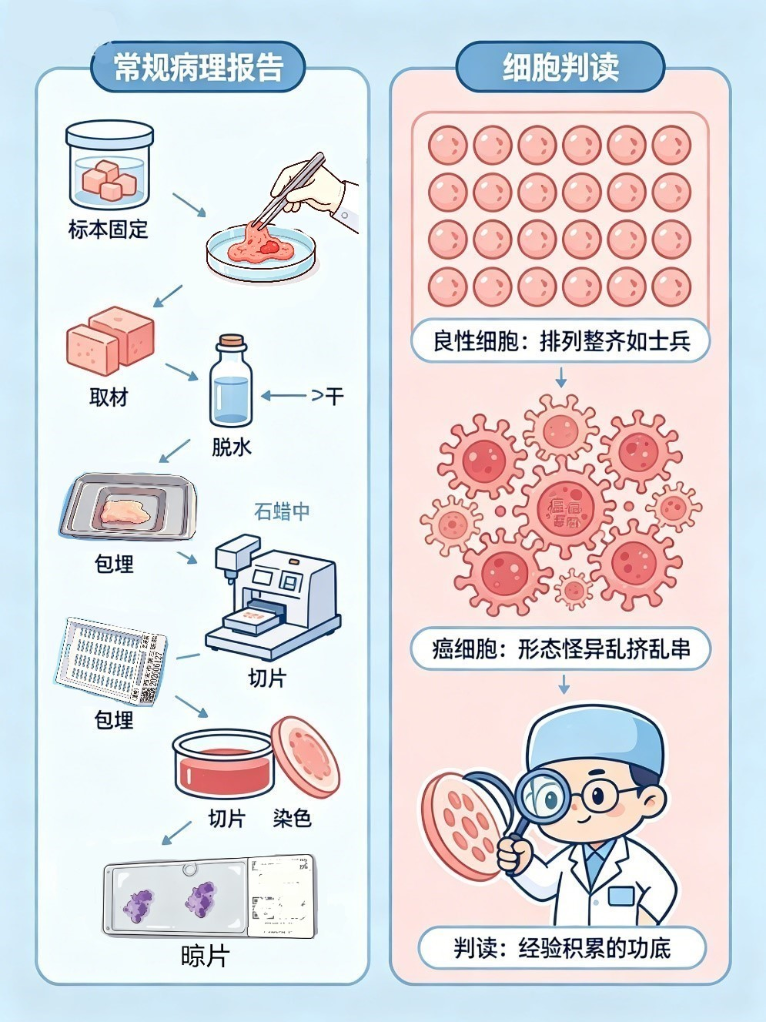 这种报告追求的是快,牺牲的是部分清晰度。细胞会因为冷冻变形,细节可能模糊,有时就像隔着毛玻璃看人。所以冰冻是初步判断,准确率高,但不是最终定论。