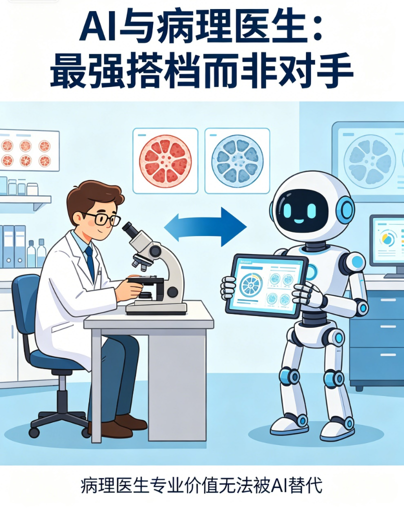 随着AI技术的快速发展,“AI会取代病理医生”的说法不绝于耳,不少人疑惑:病理医生靠看切片诊断的工作,AI是不是早晚能全盘接手?其实答案很明确:AI从来不是病理医生的“对手”,而是并肩作战的“最强搭档”,病理医生的专业价值,目前无法被AI替代。