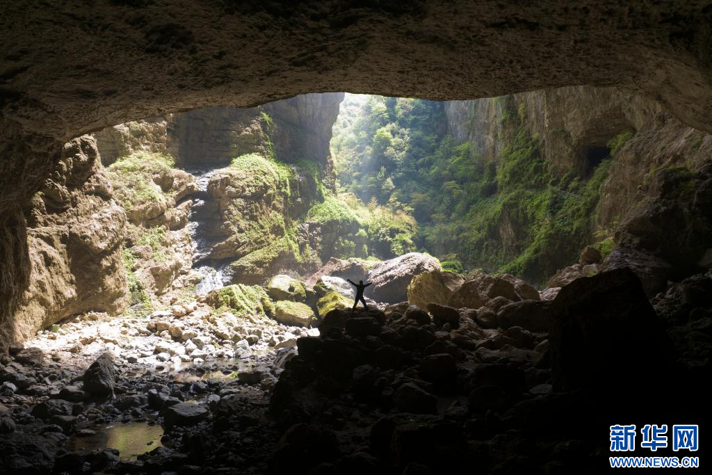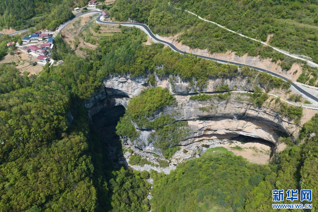 陕西省汉中市宁强县禅家岩镇地洞河天坑景色(4月24日摄,无人机照片)。