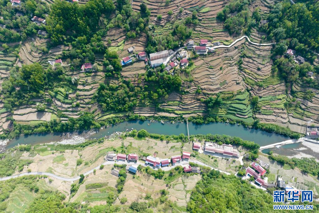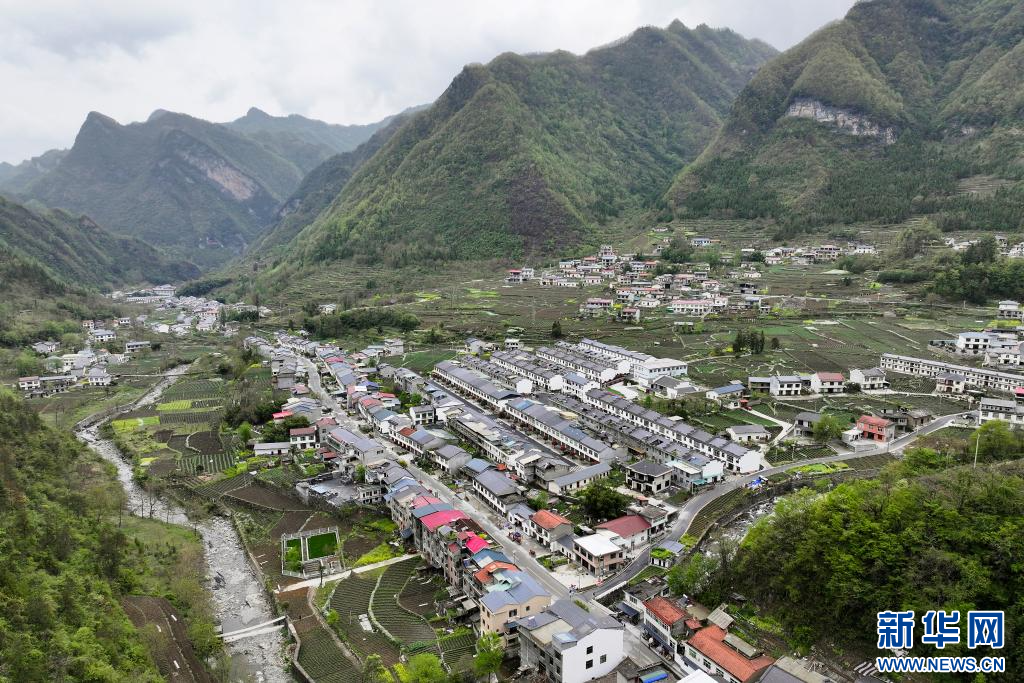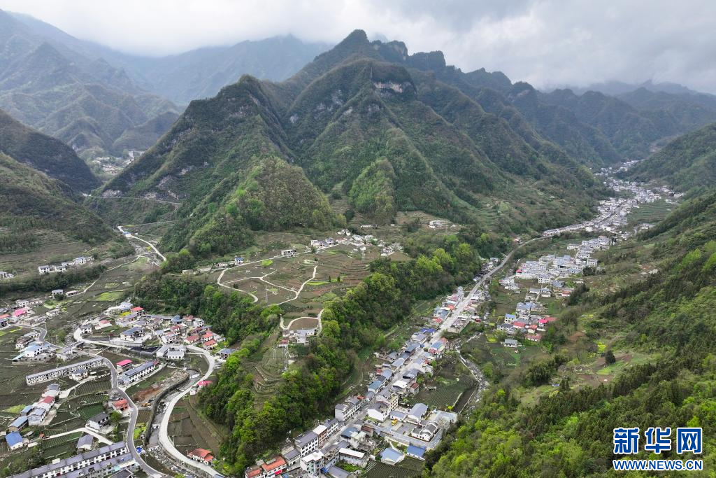 陕西省汉中市宁强县毛坝河镇大竹坝村景色(4月24日摄,无人机照片)。