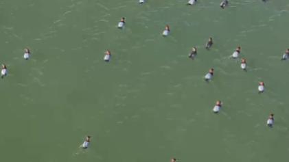 近日,陕西省千湖国家湿地公园迎来大批越冬候鸟,成群的红头潜鸭游弋觅食、临水嬉戏,野生鸬鹚站立水面,舒展羽翼,为冬日的千湖湿地增添了生机与灵动之美。