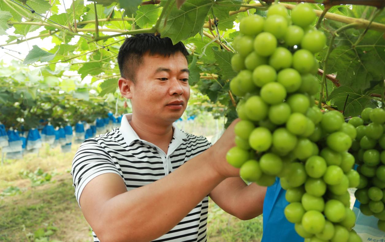 "目前,鄠邑区户太八号、红巴拉多、阳光玫瑰、甜蜜蓝宝石等20多个品种搭配种植,实现了从6月底到10月的错峰采摘、轮番上市。"