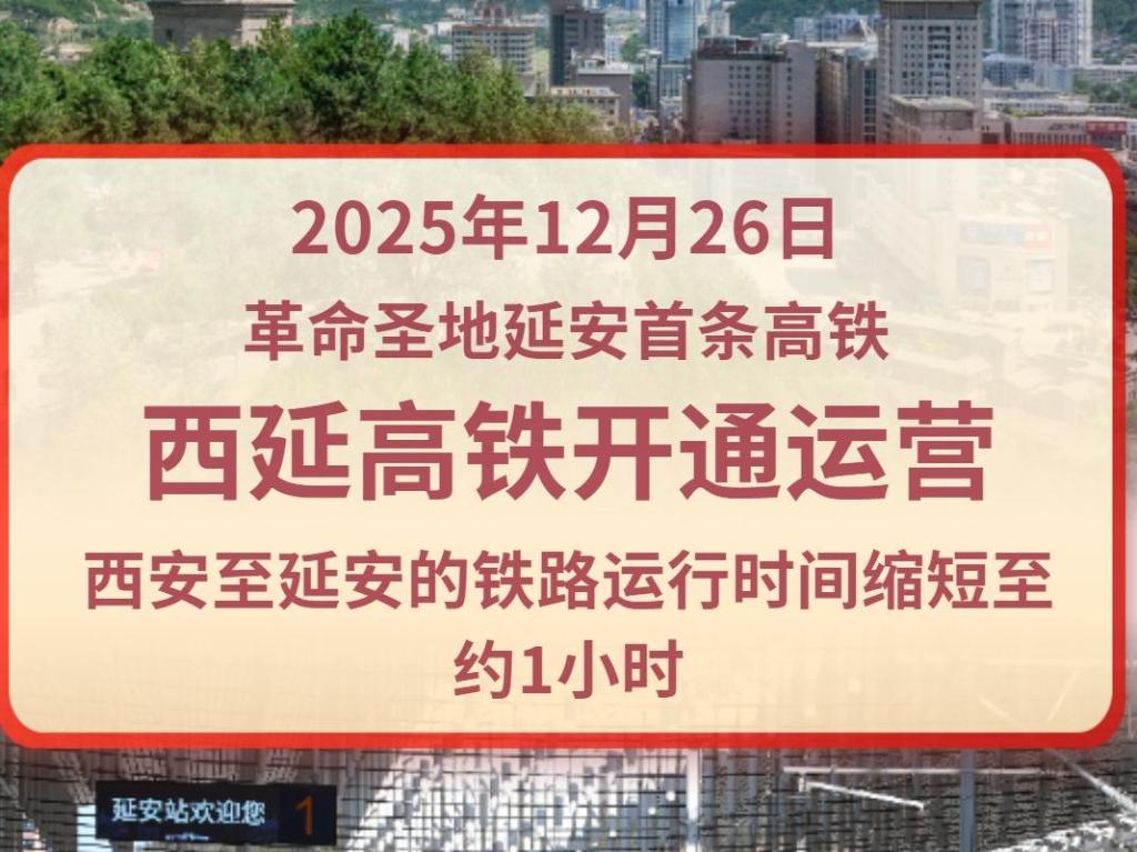 延安是中国革命的圣地、新中国的摇篮。2025年12月26日,革命圣地延安首条高铁西延高铁开通运营。