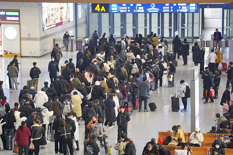 1月8日,旅客在西安火车站候车室等待检票进站乘车。尤艇摄