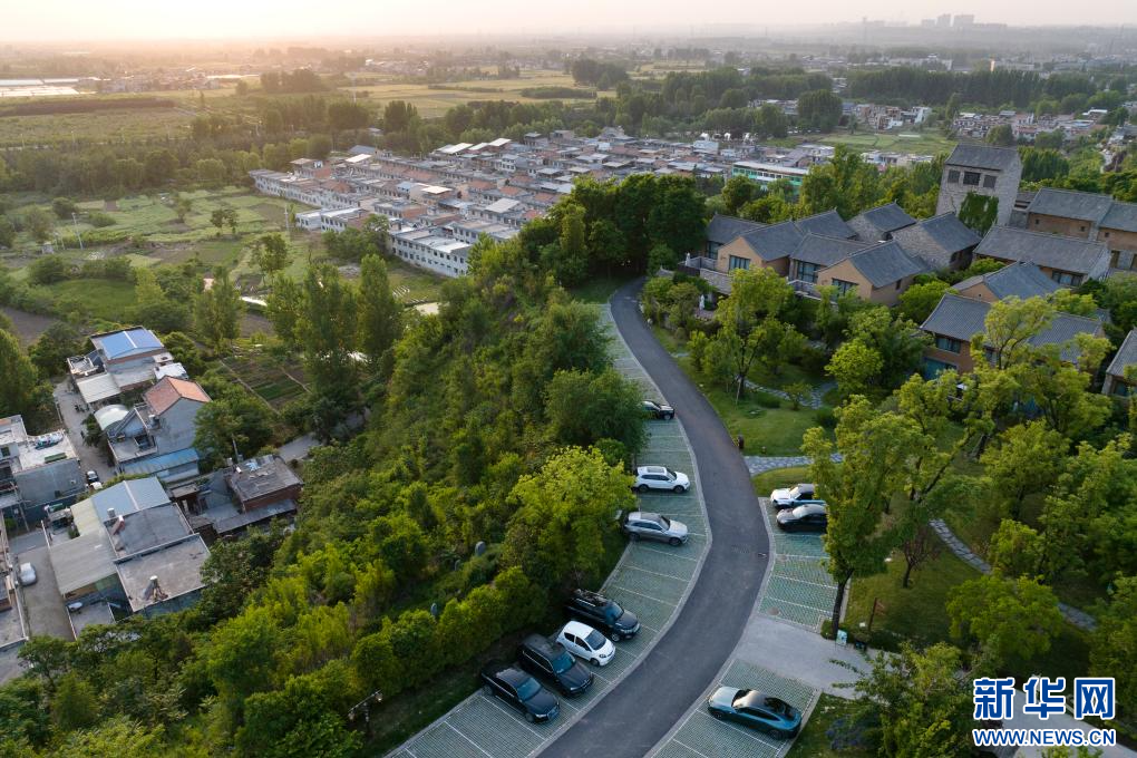 秦岭脚下的西安市长安区“长安唐村”景区(5月15日摄,无人机照片)。
