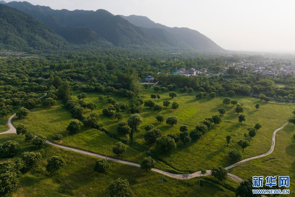 西安市长安区子午街道南豆角村的板栗古树群(5月15日摄,无人机照片)。