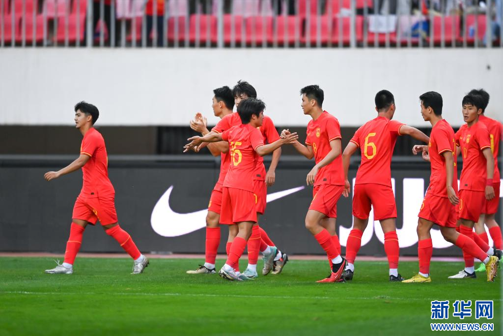 6月4日,中国队球员庆祝进球。新华社记者 邹竞一 摄pagebreak
