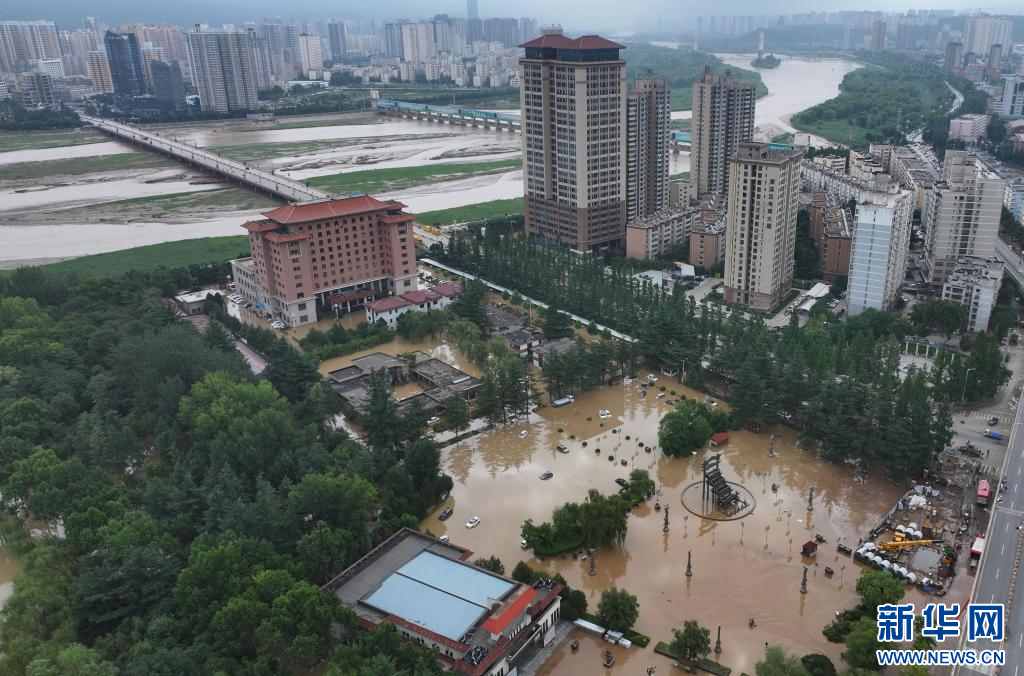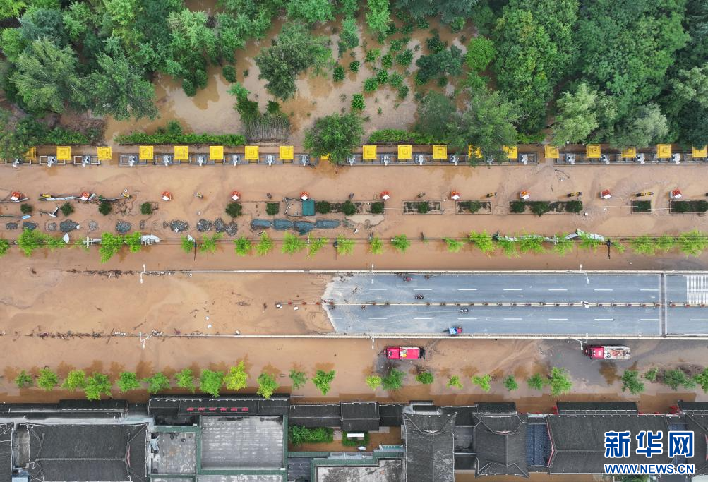这是宝鸡市城区一处受灾路段(无人机照片,7月18日摄)。