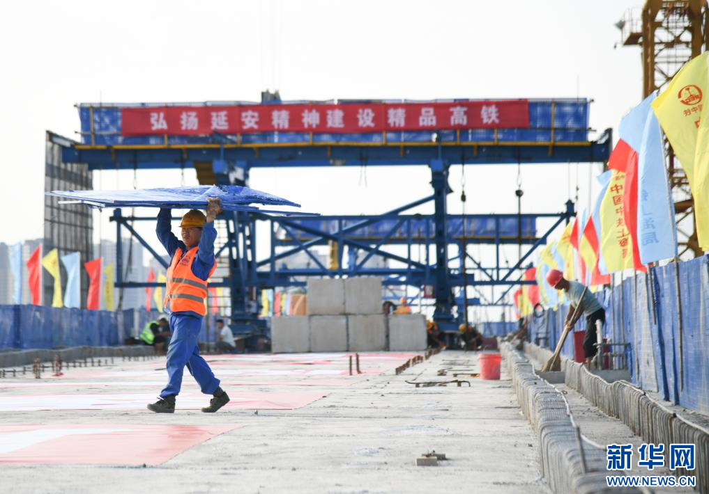 西安至延安高速铁路是陕北革命老区的首条高铁,也是国家高速铁路网包(银)海高速铁路通道的重要组成部分,建成投入运营后,西安至延安的铁路运行时间将从目前的2.5小时缩短至约1小时。新华社记者 张博文 摄pagebreak