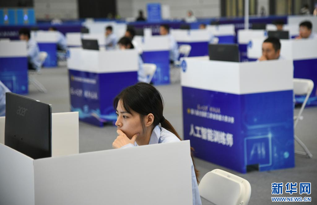 9月11日,选手在位于西安国际会展中心的比赛场地参加人工智能训练师工种比赛。