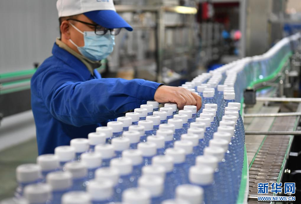 工人在安康市旬阳市一家包装水生产企业车间内工作(10月23日摄)。