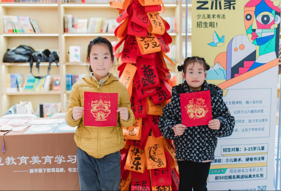 值得一提的是,书香工坊推出了免费讲解活动,带大家了解中国古代造纸术、印刷术的发展历程,汉字的演变过程,以及书籍装帧形式的变化。参与者还可以亲手制作并带走属于自己的新年“福”字拓印,将新年第一“福”迎回家。