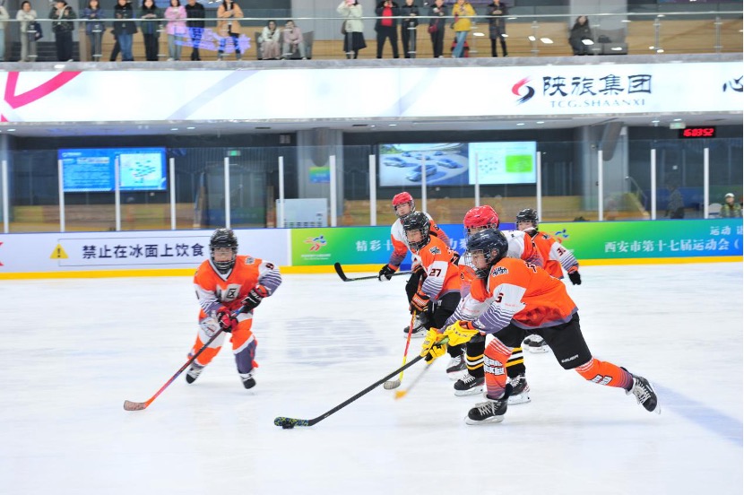 西安市第十七届运动会(青少年组)冰球比赛场景。西安市体育局供图