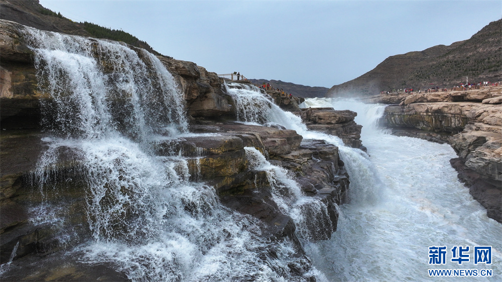 黄河壶口瀑布景区吸引众多游客观赏。