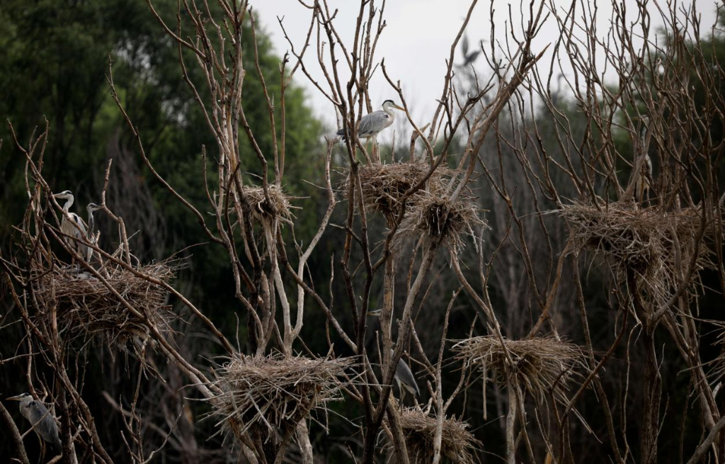 7月1日,在合阳县沿黄公路附近的北方鹭岛,大批鸟儿筑巢繁衍。崔正博 摄