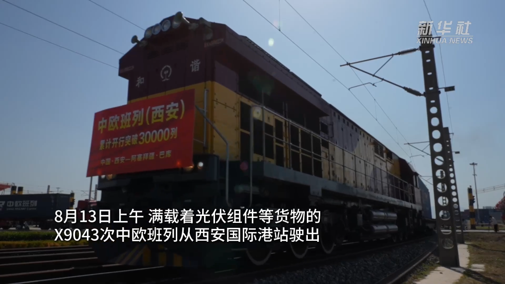 8月13日上午,满载着光伏组件等货物的X9043次中欧班列从西安国际港站驶出,将一路向西经霍尔果斯口岸出境,穿越哈萨克斯坦全境、跨里海,开往阿塞拜疆巴库,标志着中欧班列(西安)自2013年开行首列以来累计开行突破30000列,超全国中欧班列累计开行总量的四分之一。