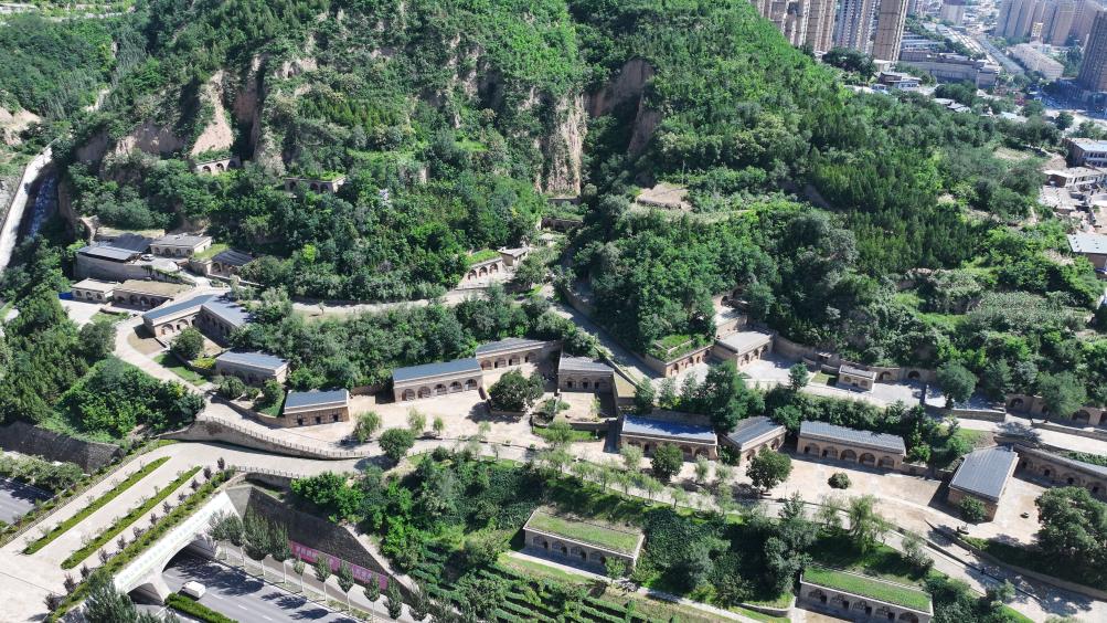 延安桥儿沟东山革命艺术家馆群(无人机照片,2025年7月30日摄)。新华社记者 樊雨晴 摄