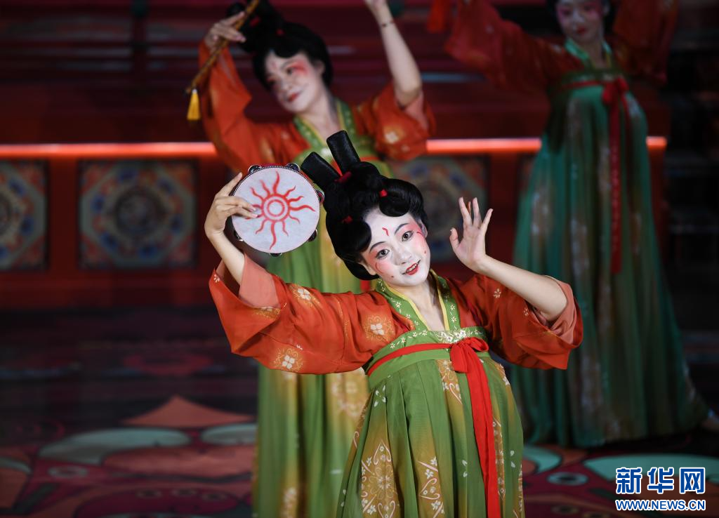 8月29日,演员在西安市长安十二时辰主题街区表演。 新华社记者 张博文 摄