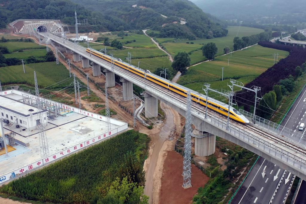 9月11日,西延高铁联调联试综合检测列车驶入延安站。新华社发(祁小军 摄)