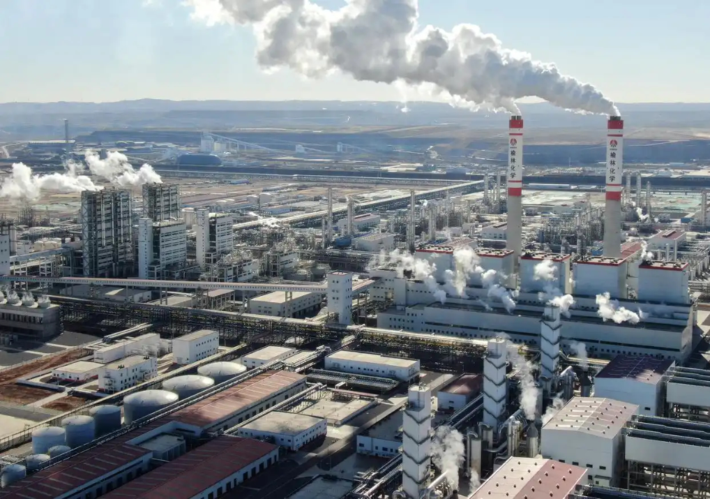 在位于陕西省榆林市的榆神工业园区,陕西煤业化工集团榆林化学煤化工项目生产正如期推进(2023年11月29日摄,无人机照片)。新华社记者 李一博 摄