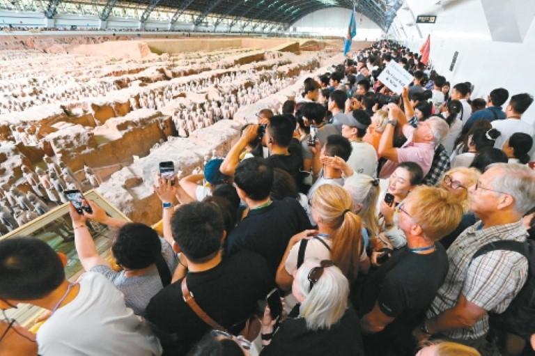 秦始皇兵马俑吸引众多海内外游客前来参观游览 资料图片