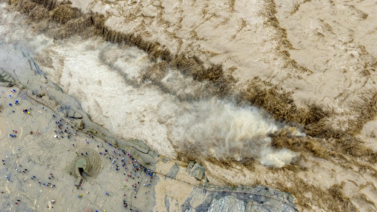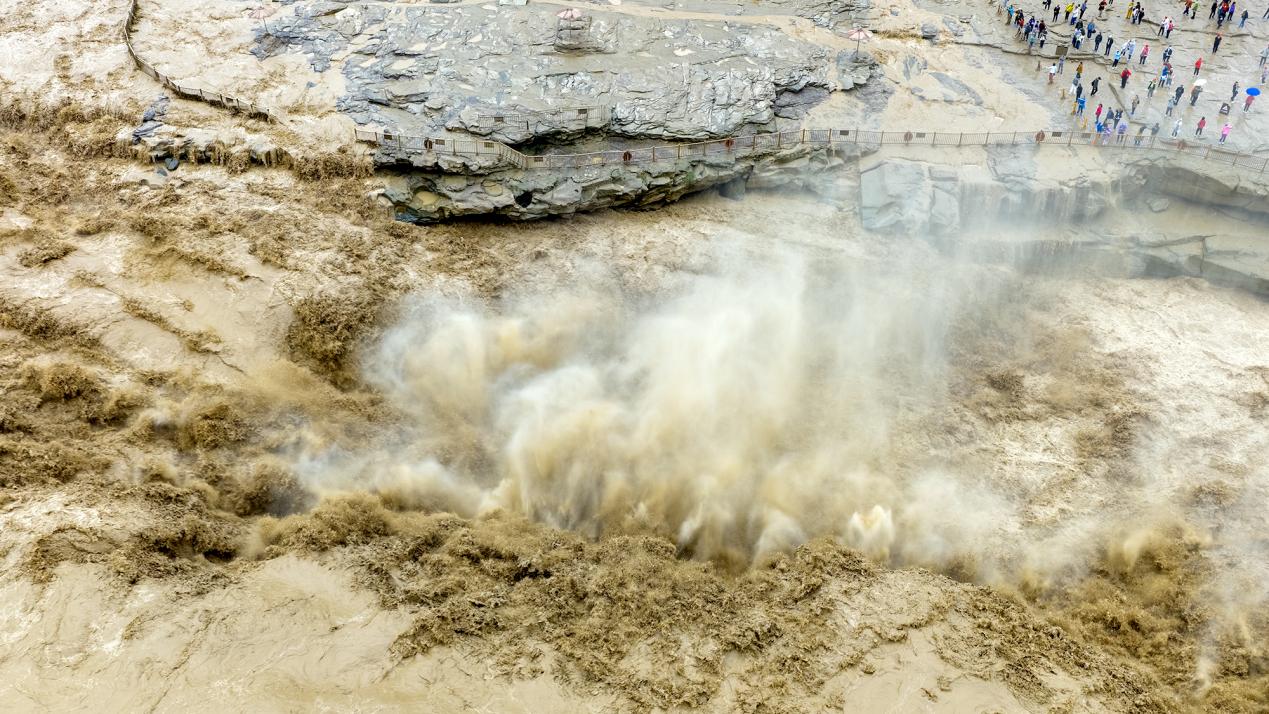 9月17日,陕西宜川壶口瀑布在约1500立方米每秒的水流量下,水流湍急,激起巨大水雾,展现雄浑气势。pagebreak