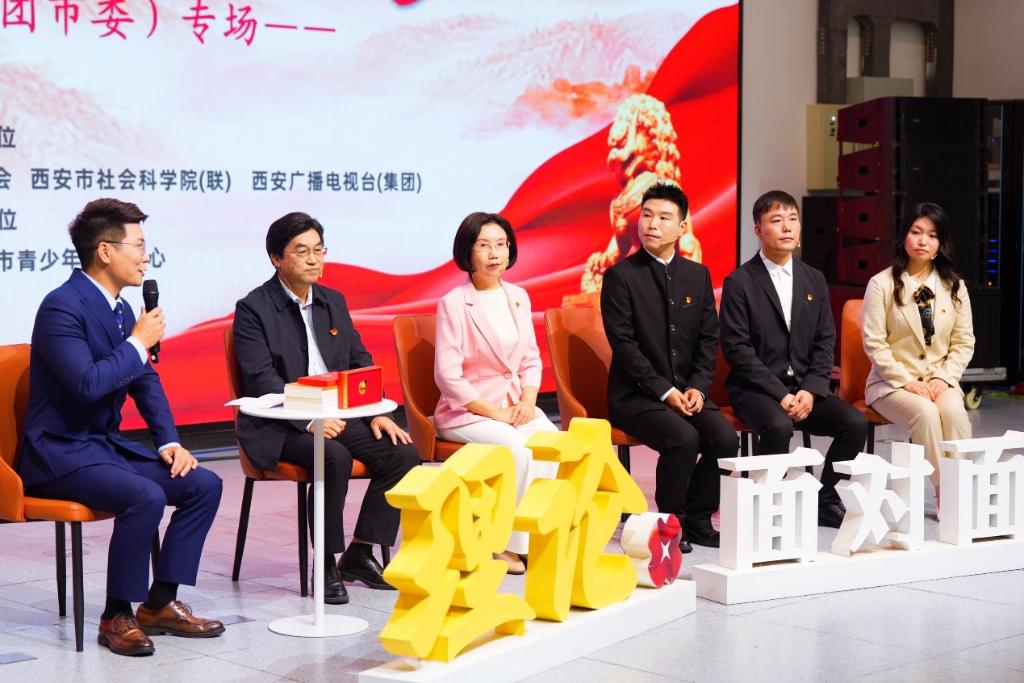 9月23日,由中共西安市委宣传部、新华网陕西分公司、西安市总工会、西安市社会科学院联合西安广播电视台共同推出的“时代强音”大型理论宣讲融媒体节目《理论面对面》党史学习教育(团市委)专场在西安市青少年活动中心举行。本次活动以“弘扬伟大抗战精神 凝聚团结奋进力量”为主题,通过理论阐释、历史解读、青年分享等相结合的形式,推动抗战精神深入青年心中,增强历史自觉,坚定文化自信。