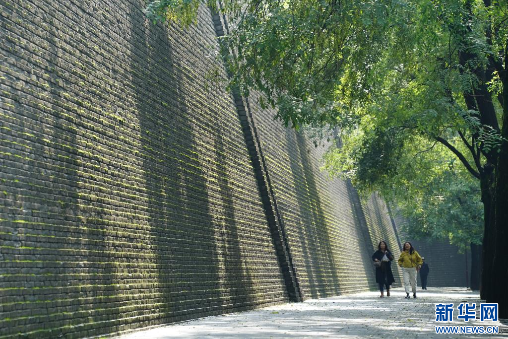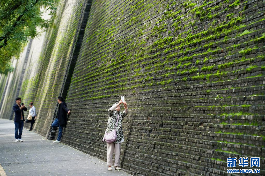 西安城墙始建于隋唐、扩建于明代,是中国现存历史最悠久、保存最完整的古代城垣建筑。连绵秋雨过后,苔藓等植物为西安城墙披上了一层绿色的外衣,吸引市民和游人驻足观看、拍照。