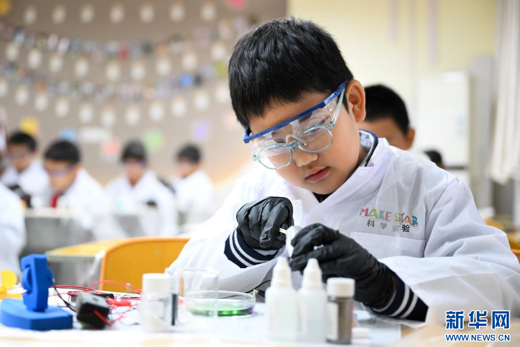 10月18日,学生在西安市新城区太华路小学参加科学实验操作赛。