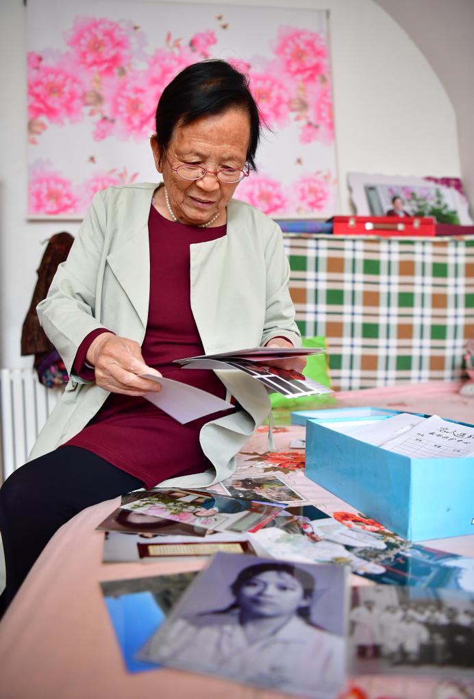 2018年4月29日,路生梅在家中翻看她年轻时候的照片。新华社记者 邵瑞 摄
