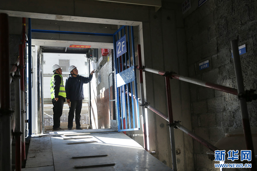于卫刚与阿里地区住建局陕西援藏干部查看噶尔县一处公共租赁住房项目的建设情况。新华网 王智超摄pagebreak