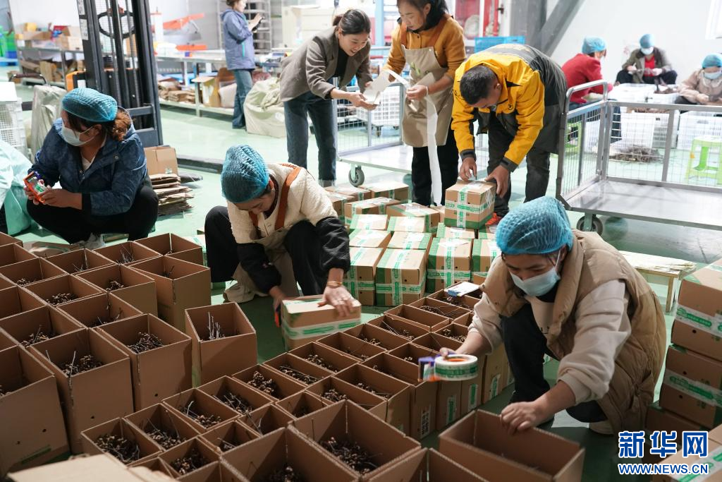 10月27日,在旬阳市一家电商企业车间,工人对拐枣进行打包。