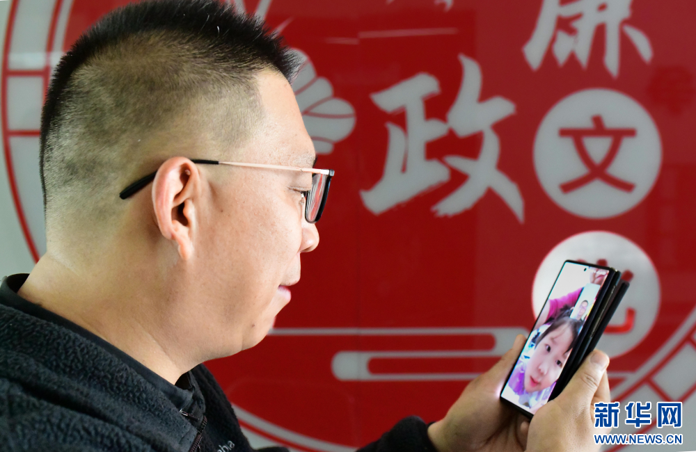 在闲暇时间,黄天明与家人报平安。王正 摄